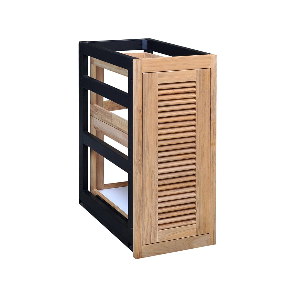 No modern kitchen can be without at least one pullout, so it’s no surprise they’re one of the most popular features in outdoor kitchens too. Our teak pullouts are available in single and double can sizes with your choice of full height doors, door with false drawer, & drawer combo, as well as our new pullout pantry. Versions with drawers or false drawers will fit standard 35 qt. trash receptacles while full height pullouts can handle taller 50 qt. sizes. Our teak pullouts feature premium Häfele® full extension, soft-close drawer runners that support up to 70 lbs., making them great for a lot more than just trash and LP tanks. They’re also ideal for storing charcoal and other heavy and messy cooking supplies safe, dry, and out of sight.